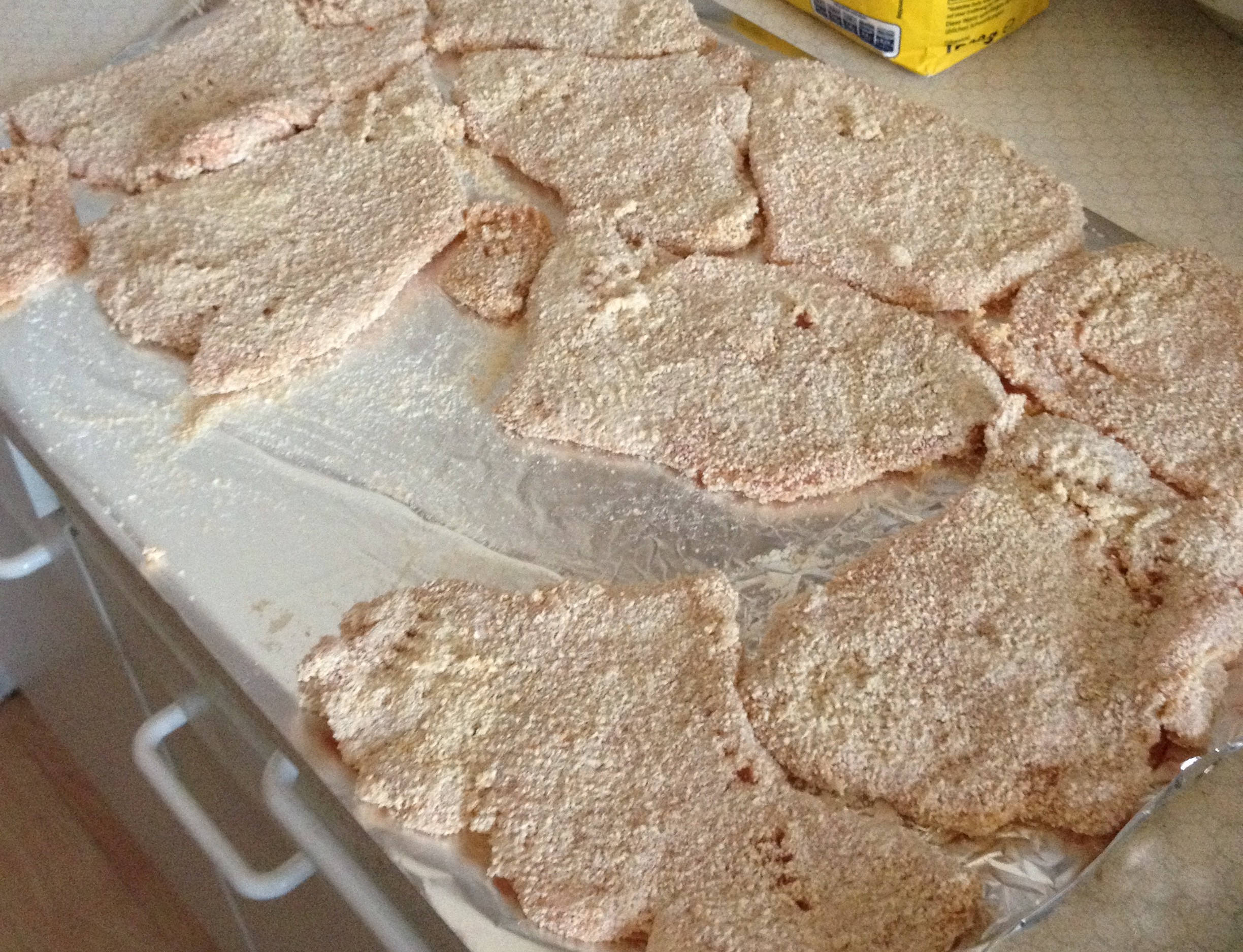 Now, this is an incredibly simple recipe basically involving bashing, coating and cooking but I thought I’d take you through the 8 taste-bud-tantalising steps in case, like me, you find cooking to be a task equivalent to open heart surgery.
